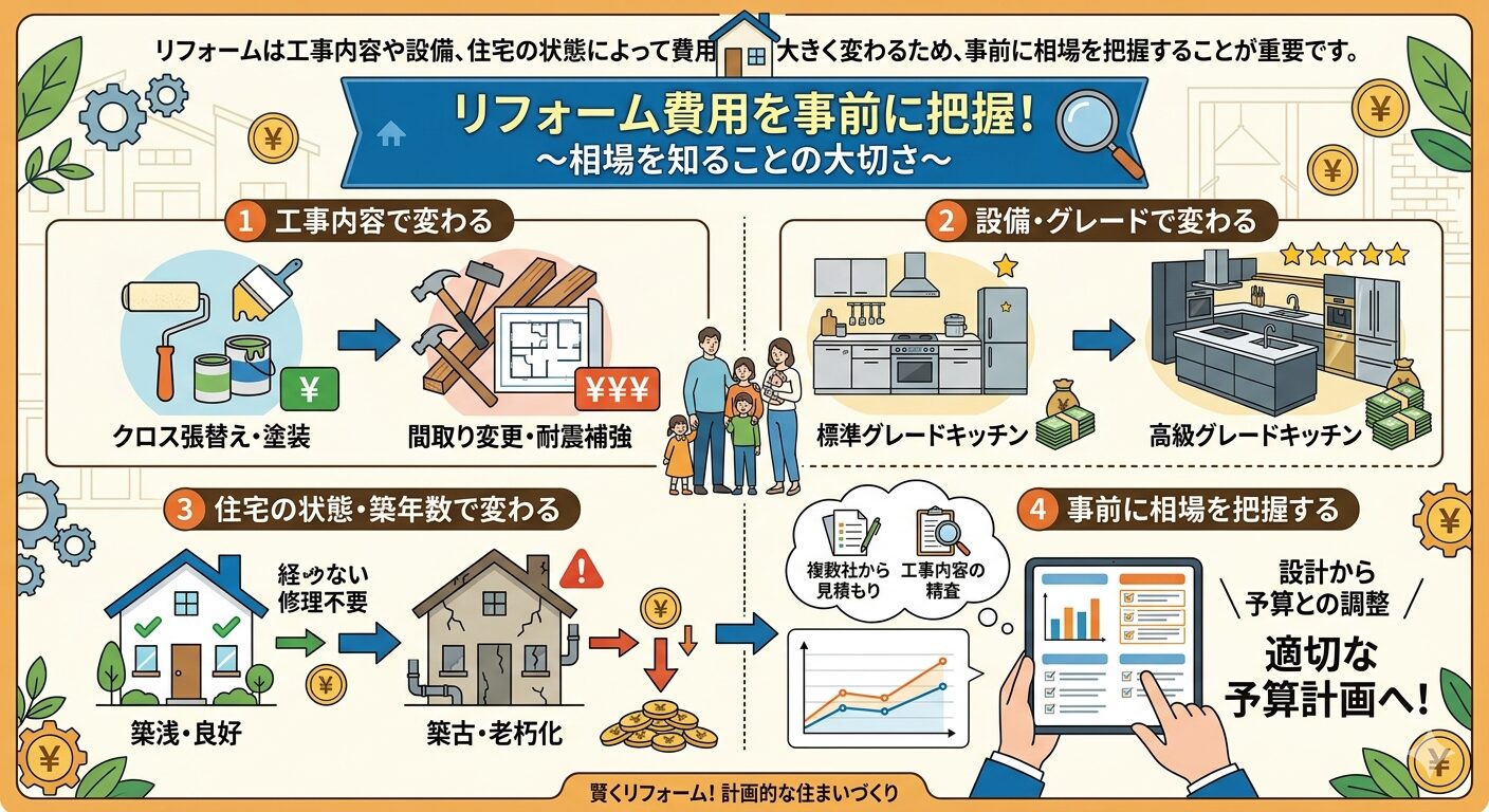 同じリフォームでも費用が変わる理由を理解しておきましょう。